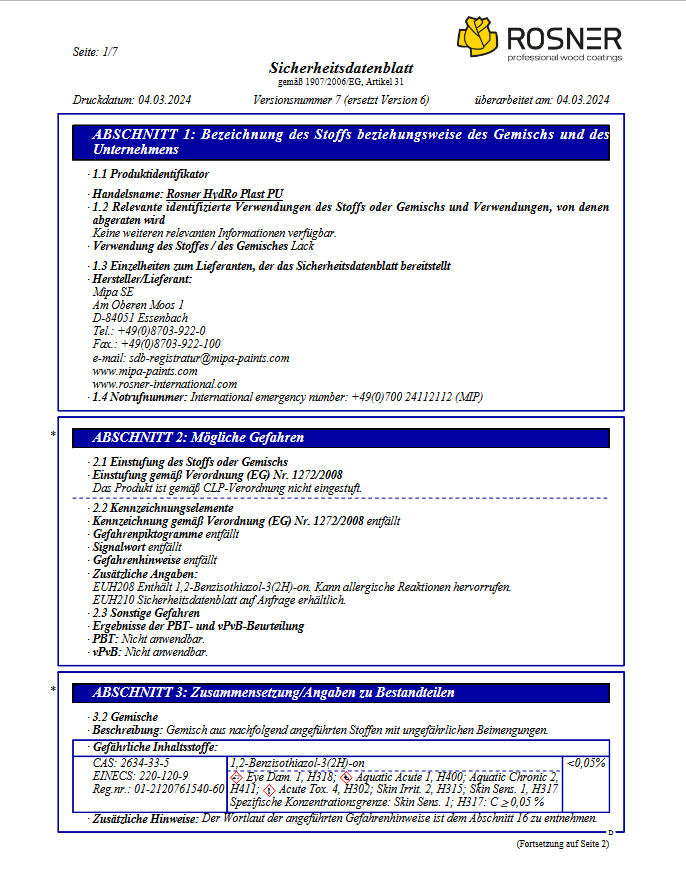 Produktinformationen "Rosner HydRo Plast PU, halbmatt, 1 Liter"