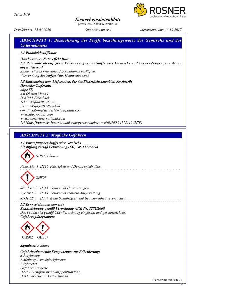 Der Rosner Natureffekt Duro ist ein hochwertiger, wasserbasierter 2K-PUR-Lack mit besonders matter Optik, der Holzoberflächen ein natürliches, unbehandeltes Aussehen verleiht – bei gleichzeitig exzellenter mechanischer und chemischer Beständigkeit. Ideal geeignet für beanspruchte Flächen wie Tischplatten, Möbel, Küchenfronten oder Treppen.